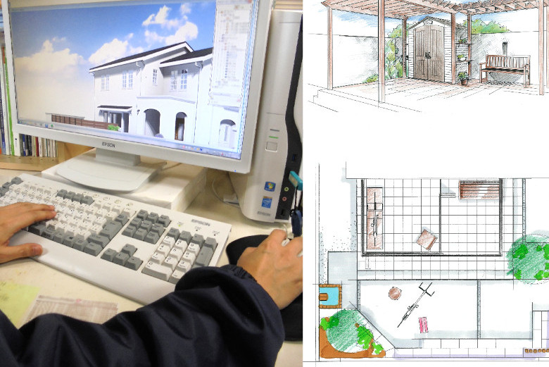 自社の専門プランナーやデザイナー、コーディネーターが、施主の要望に応じてデザインされたプランをCGや手描きのラフスケッチなど、具体的な完成イメージを提案してくれる。「自分らしい個性的で魅力あるお庭を創りたい」という人には、相性の合いそうなガーデン業者といえるだろう。